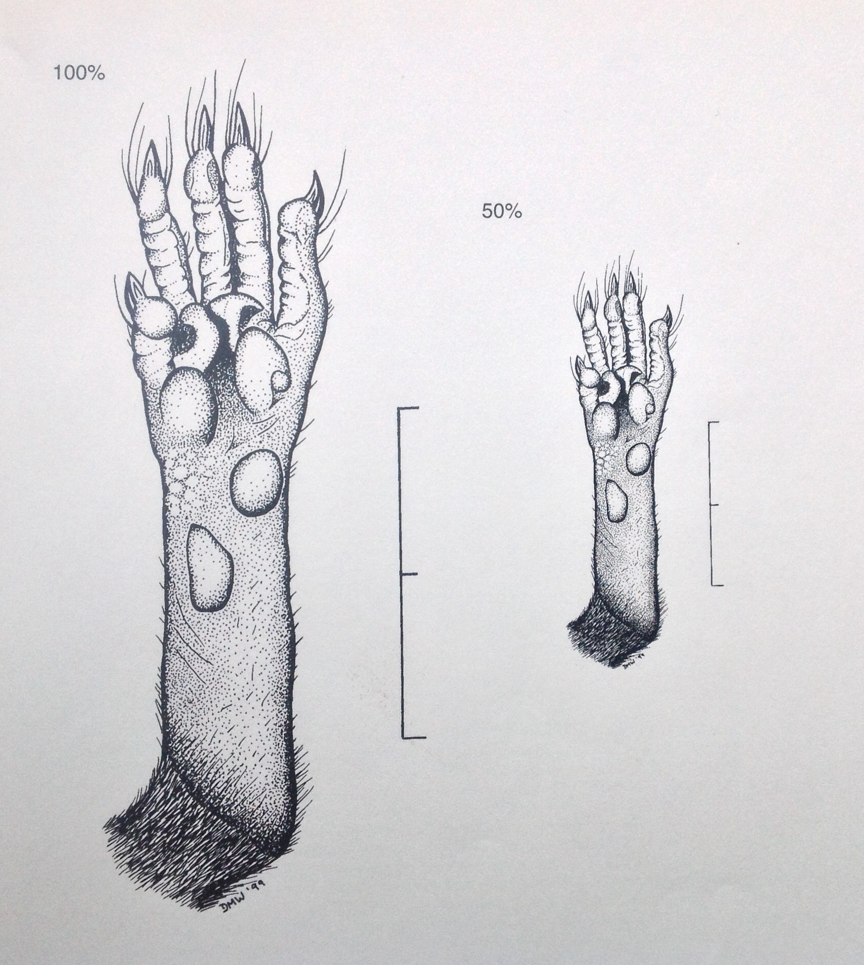 The two images below were drawn using pen and ink using a camera lucida to ensure all details depicted were anatomically correct. They were used in the formal description of a new species of shrew from Guatemala.